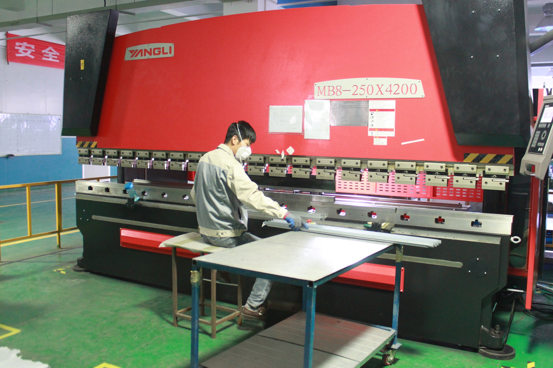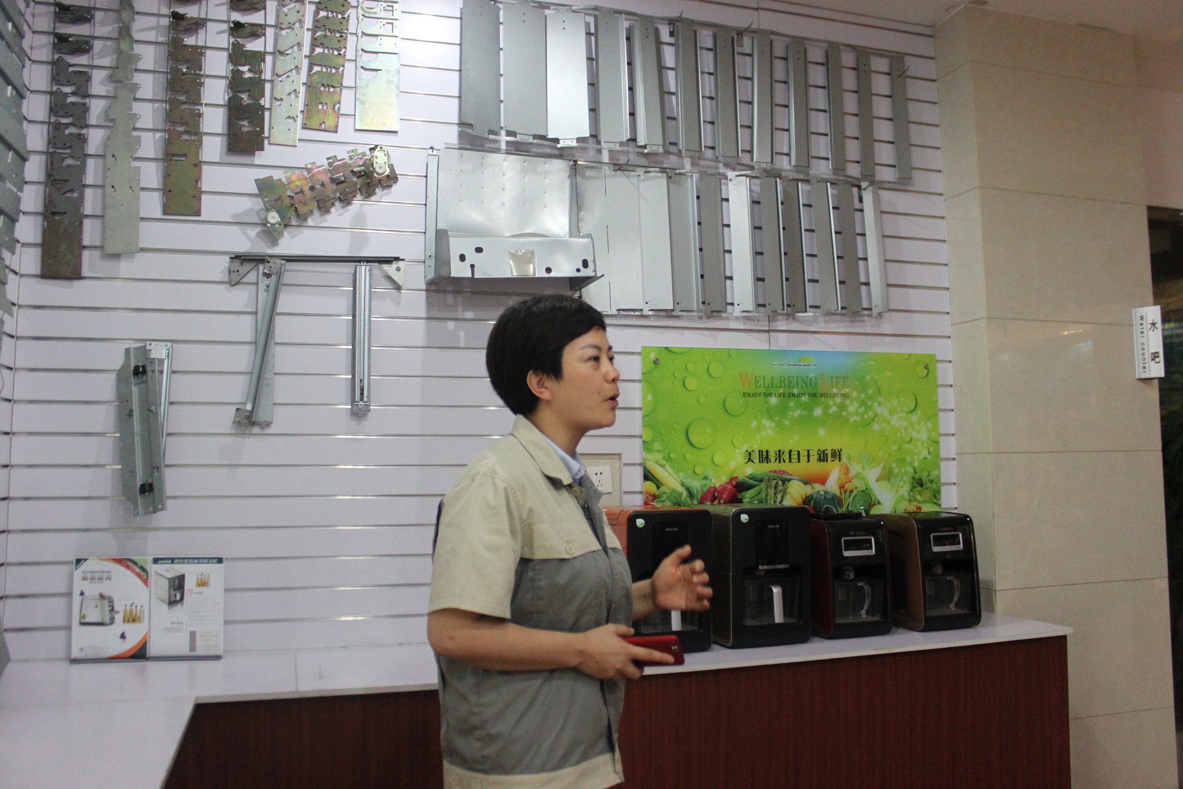 參觀的第三站:鈑金加工部,由部長助理李大奎帶隊,李助理詳細介紹了每一個鈑金件的切割下料、沖裁加工、彎壓成形等工序,并在設備上實際操作了一番。