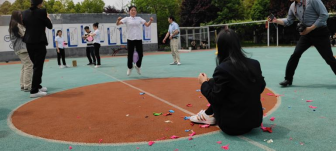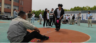 第二項(xiàng)進(jìn)行的是“合力吹氣球”,共有六組參加,每組4人,每個人分工不同,吹、扎、運(yùn)、破,完整的運(yùn)送5個氣球并用屁股坐破所用的時間最短為獲勝。這個項(xiàng)目不僅考驗(yàn)體力活、手工活,還考驗(yàn)足夠強(qiáng)大的肺活量。