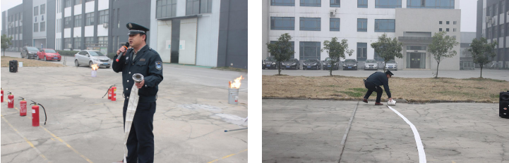針對(duì)距離較長(zhǎng)、突發(fā)火災(zāi)或猛火,保安部謝隊(duì)長(zhǎng)做了詳細(xì)的介紹,并實(shí)地演練了水帶、水槍、閥門、接頭的正確使用與安裝順序,并為員工展示了鋪設(shè)水帶、安裝閥門和銜接水槍。
